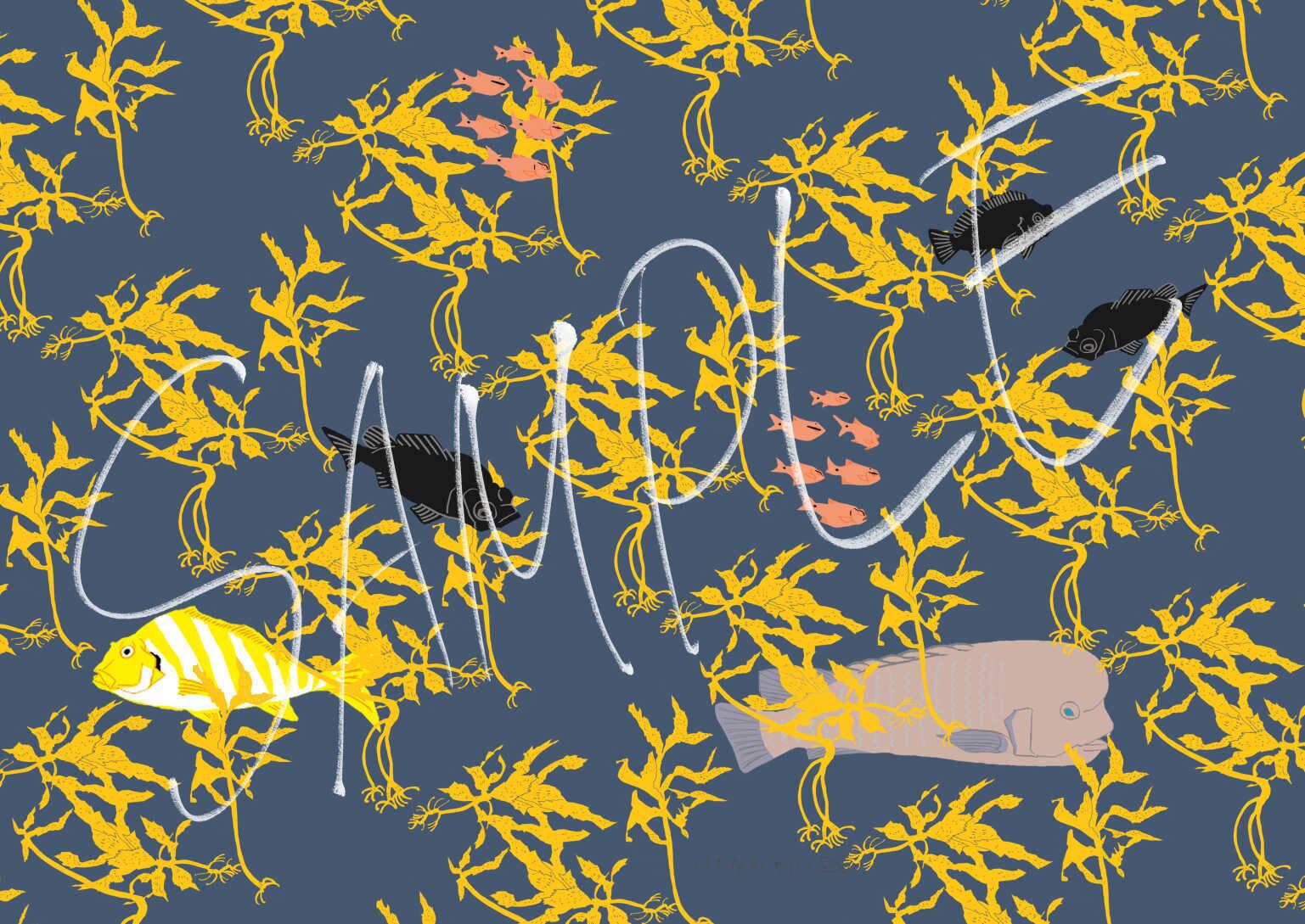 たゆたうワカメやアラメのなかにお魚たちが隠れています。