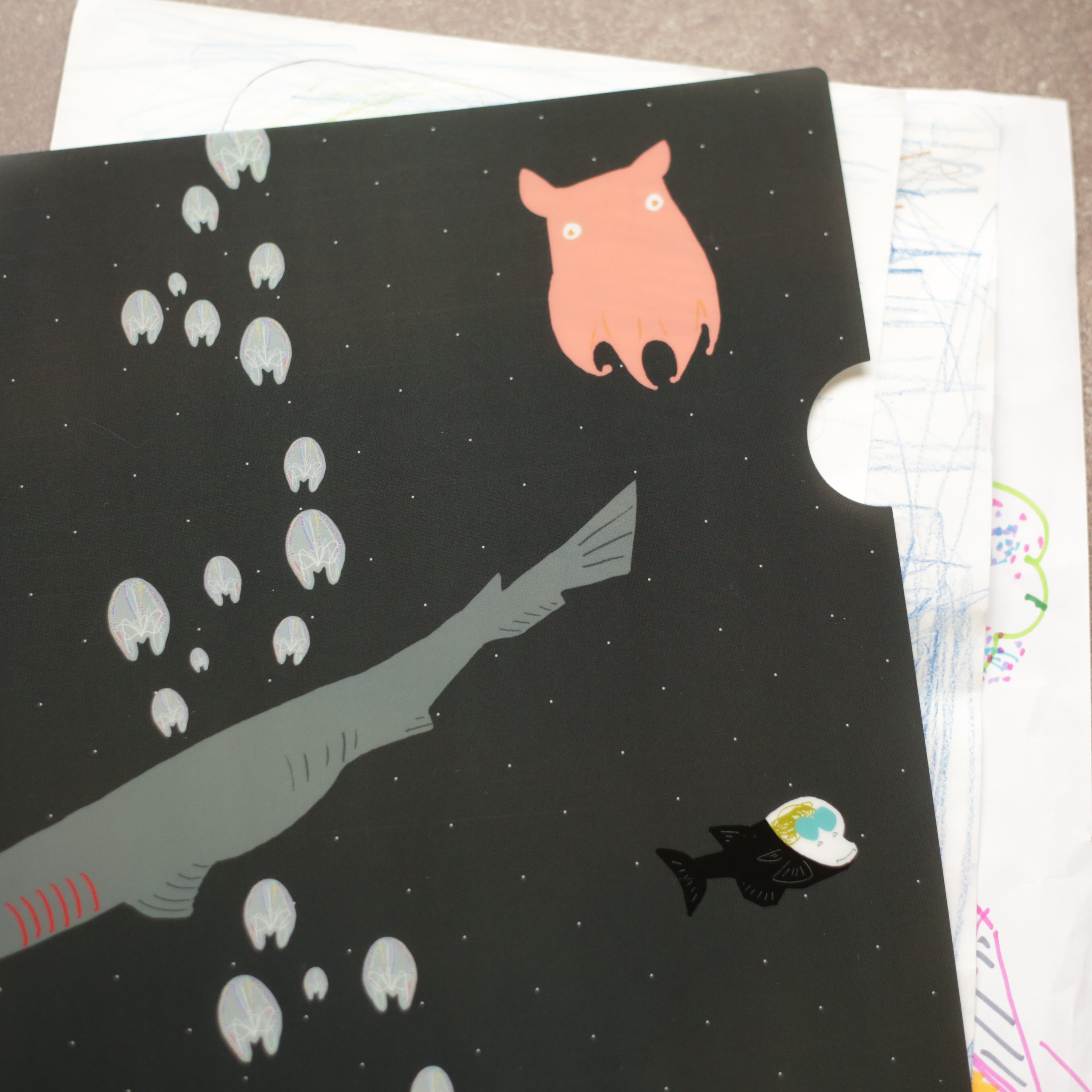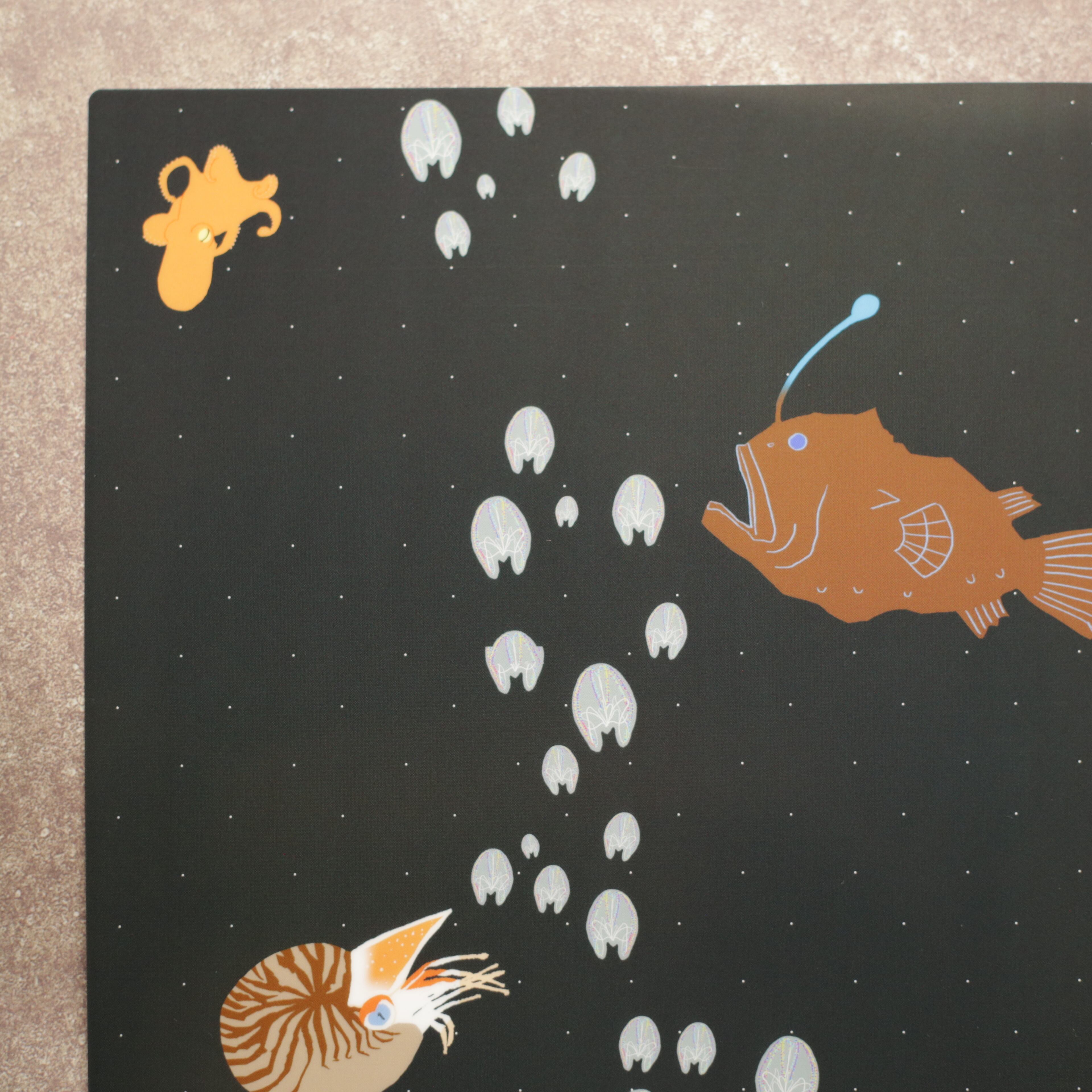 深海魚たちの住む深海を描いたA4サイズのクリアファイルです。